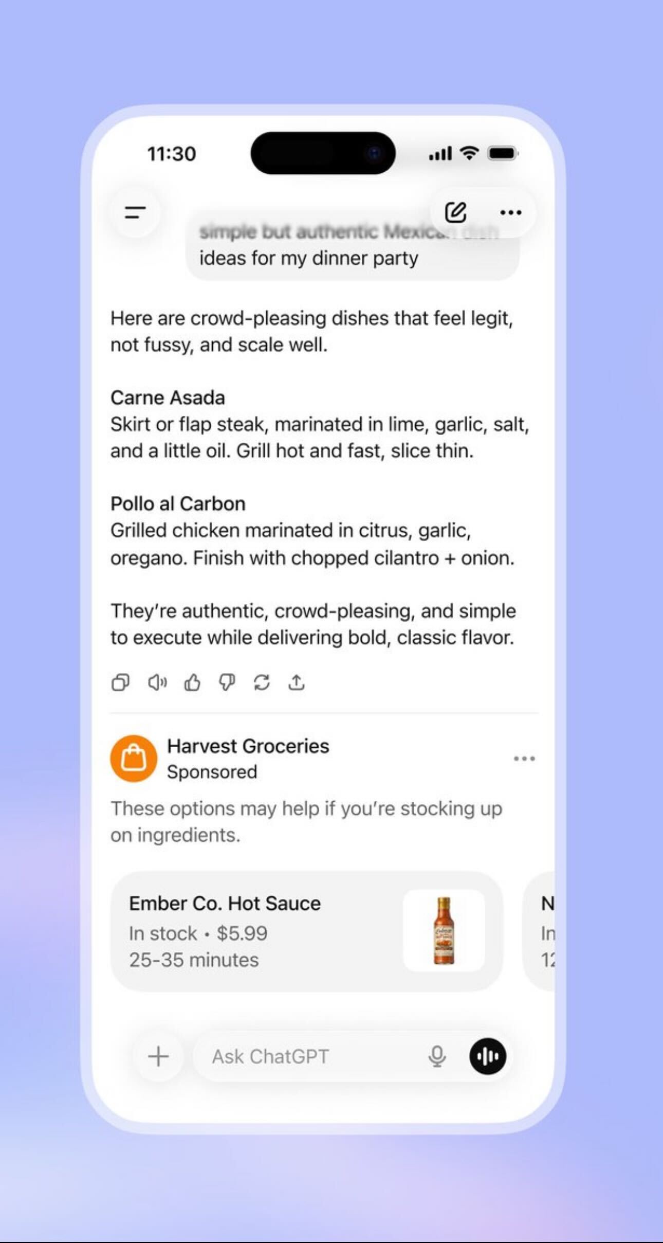 Sponsored content that feels helpful, not intrusive—integrated into the conversation flow.